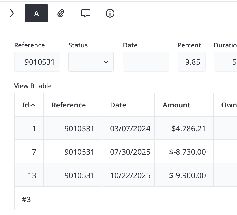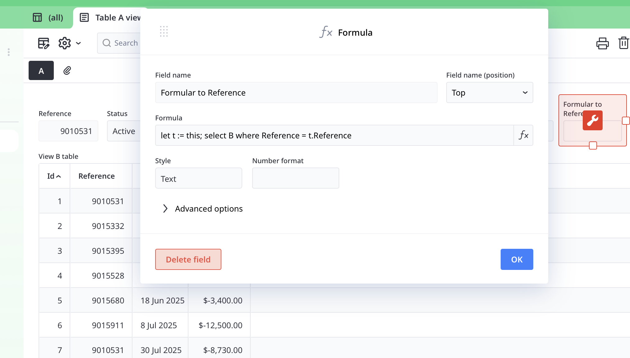 let t := this; select B where Reference = t.ReferenceIs there a reason why you don't create a reference field in B to A? So you don't have do any selects in the future.
