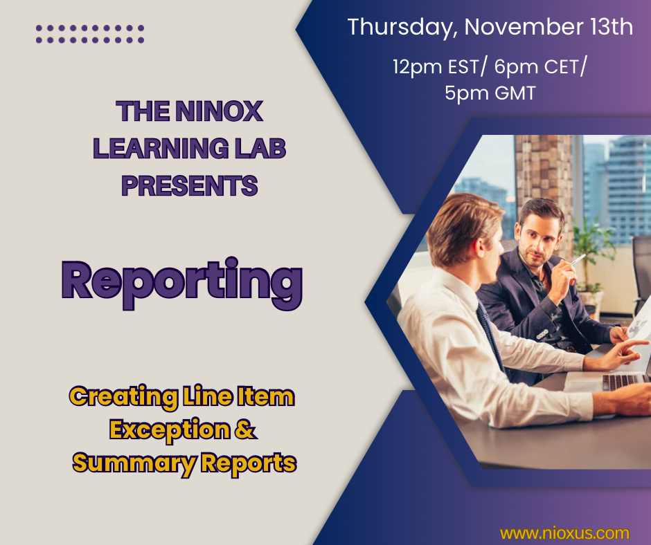 Live Webinar: Reporting - Creating Line Item Exception & Summary Reports on Thursday, November 13th at 12:00pm EST/ 5:00pm GMT / 6:00pm CET