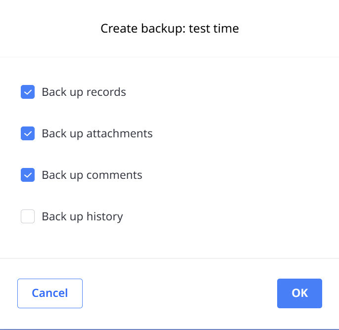 I guess, if you uncheck all, you get an empty database when creating a backup...
