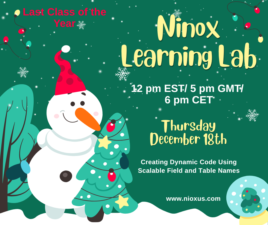 Join Us For Ninox Learning Fun as we create dynamic code using scalable field and table names! Bring your favorite beverage and humor. Live Q&A after class!