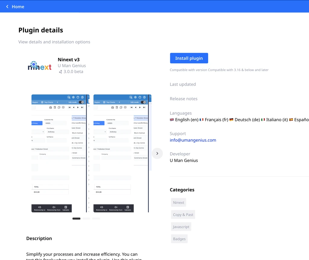 - link their plugins directly within Ninox