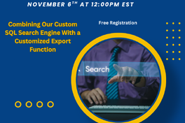 Combining a Custom SQL Search Engine With a Customized Export Function tomorrow, Thursday, November 6th at 12:00pm EST